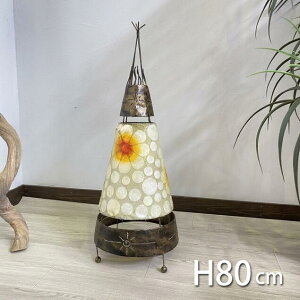 ・商品詳細 シェルとアイアンのアジアンランプ。 円すい形の個性的なデザイン。 シェル素材で可愛らしく花柄がデザインされています。 明かりがついていない時でもしっかりとした存在感があります。 ・配線・電球付き(E-12/20w) ・入