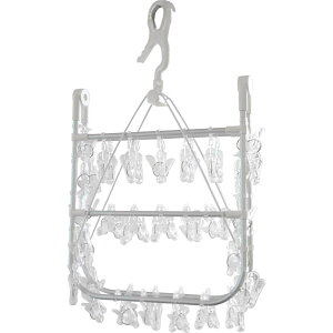 ●靴下やハンカチをたっぷり干せる●色々な方向から干せる回転式フックを採用●物干しやロープにしっかり固定できるキャッチ式で、キャッチ部にカモイフック付き●サイズ(mm):幅350×奥行595×高さ320●重量:480g