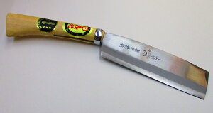 日本製(兵庫県三木市)、新品です。実用工具として販売しています。全長:215mm,ハンドル:120mm,ブレード:93mm,材質:青紙鋼(3層鋼),真鍮ハンドル。紙箱が付属します。