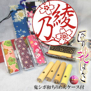 和柄のはんこシリーズ 12mm 銀行印や認印サイズ 東京ちりめん 印鑑セット 菊・桜・椿・山茶花・梅・紫陽花 送料無料 印鑑とケースに、同じ模様がデザインされてい...