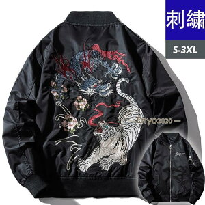 個性の龍虎刺繍が施されて、バランスが良いシルエット、無地で、コーディネートに合わせやすいです。◎しっかりとした生地で仕上がっており、色合い