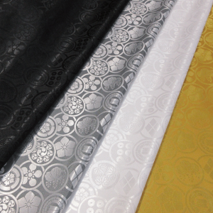 模様 日本製のさや形サテンジャガード生地。光の当たり方で表情が変わる上品な和風生地。さらりとした質感でストレッチ性なし。和装やよさこい衣装、小物製作にもおすすめ。...