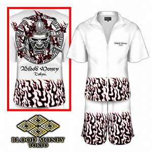 送料無料,ポイント10倍,半袖,セットアップ,ジャージ,右翼,ドキュメント,雑誌掲載,チョイ悪,チョイワル,ブランド,BLOOD MONEY TOKYO,ブラッドマネートーキョー,大きいサイズ,和柄,プリント,白,黒プリン...