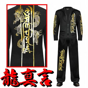 送料無料 ポイント10倍 竜 龍 ドラゴン セットアップ ジャージ スポーツウェア 上下組 黒 金 ブラック ゴールド プリント ヤクザ 昭和 平成 ヤンキー オラオラ系 悪羅悪羅系 服 派手 迫力...