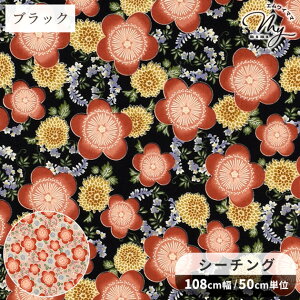 インテリア小物など和のテイストを 大切にしたハンドメイド作品にぴったり◎ シーチング 生地 梅華 和柄 梅 花 花柄 華 植物 四季彩文様 レトロ バッグ ポーチ 雑貨 パッチワーク 布 綿 コットン...
