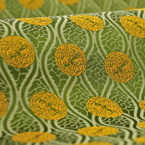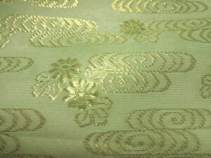 爽やかな淡い緑の地色に花菱が織り込まれた華やかな生地です。