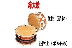 【全音(ゼンオン)締太鼓】並附上 締太鼓(ボルト締) ●仕様 並附上締太鼓(ボルト締) サイズ:1尺1寸5分 胴5寸 材質:胴・けやき 重さ:5Kg 付属品:バチ1組 ※納期についてはお問い合わせ下さい。