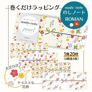 【ROMAN】50-9766 20枚綴り(4柄各5枚) 製品サイズ:縦82mm×横210mm 留めシール(和紙)40片付き 【のしノートとは?】 くるっと巻いてシールでペタっと貼るだけ! 簡単ラッピング「のしノ...
