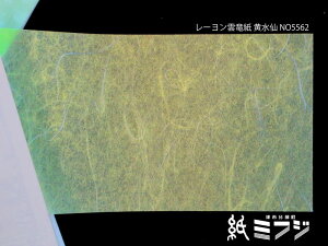 商品 雲竜紙 黄&緑系 サイズ 620 x 990 mm 色 深緑 / よもぎ ライトグリーン / ミントグリーン 山吹 / レモン 生産地 因州(鳥取県) 説明 鳥取県産の手漉き 雲竜紙。 原料は楮になります。 楮の長い繊維を散...