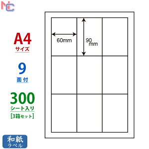 商品情報 特徴 マルチタイプ 和紙ラベル※レーザー印刷時のみ耐水効果あり シートサイズ 210mm×297mm(A4) ラベルサイズ 60.0mm×90.0mm 面付 9面付 入数 3ケース 300シート入り (【1ケース=100シー...