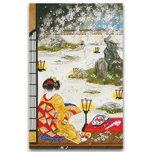 日本の伝統的な図柄を用いた和風のクリスマスカードです。 このカードの絵は特殊な紙に印刷されており、カード全体に光沢があります。 定形郵便として送って頂くことができます。 扇の透かしが入った中紙が入っており、「Season's Gree...