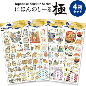 にほんのしーる極 日本 シール 犬/干支/妖怪/寿司 和紙 金箔押し 手帳 お土産 かわいい 日本製 カミオジャパン説明日本モチーフがかわいい♪和紙に金箔押しが映える「にほんのしーる極」です。4柄をセットにしてお届け