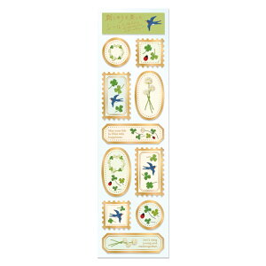 フレークシールとは... 写真やイラストに沿ってひとつずつカットされた、小さなシールのこと。 和紙素材に金箔押しのシールが23枚入っています。 パッケージは図鑑のような見た目になっており、表紙にはそれぞれのシールの説明が記載さ