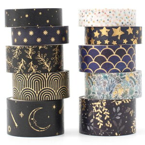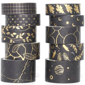 商品情報商品の説明主な仕様 【商品仕様】幅10mmのスリムテープ × 4個、幅15mmの金箔押しテープ × 4個、幅20mmの幅広テープ × 2個、合計10個の和 紙テープセットです。長さは3mで、お好みと意匠によってテープを自由に切...