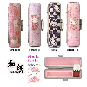 ース・3柄から選べる印鑑ケース・ハローキティー和紙。朱肉付。 ★ケースのサイズは直径12mm×60mm丈までの印鑑が入る大きさです。 項目1 素材は和紙 項目2 内装はピンクの別珍製 項目3 サイズは...