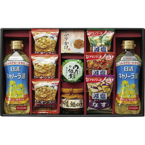 商品名 食卓バラエティギフト 商品詳細 宝幸オニオンスープ×3日清キャノーラ油(350g)島の香のり佃煮(80g)ニッスイ焼鮭ほぐし(50g)丸美屋さけふりかけ(2袋)アマノフーズ減塩いつものおみそ汁(なす...