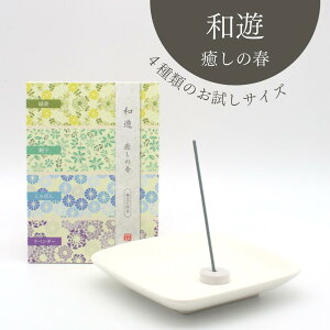 【和遊アソート】 〈癒しの香 四季の香〉 【商品説明】 発売以来人気の和モダンなお線香シリーズ「和遊」。 その香りをいろいろ試したいという声にお応えした、4種の香りを少しずつ楽しめる香立て付きのアソートセットです...