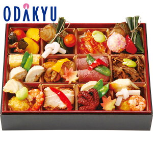 海の幸、山の幸をふんだんに使用し、黒豆・田作り・数の子などのおせちの定番料理に加え、鮑や蟹などの魚介やローストビーフをはじめとする肉料理などを、南蛮漬や西京焼、柚庵焼などバリエーション豊かな調理方法を用い...