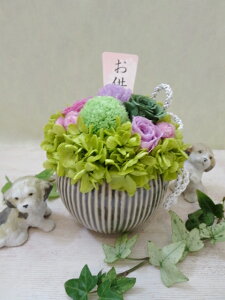 ケースサイズ:幅15cm×奥行15cm×高さ20cm 本体サイズ:幅14cm×奥行14cm×高さ15cm 花器:陶器製 ★季節や制作の状況により花材などが 多少変更になる場合がございます。 ★プリザーブドフラワーは、 生花を加工して作...