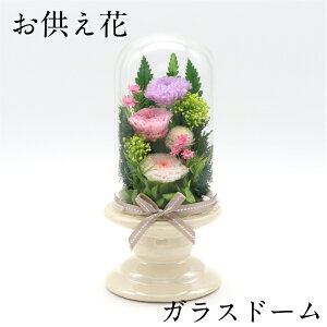 製品仕様 商品名 (プリザーブドフラワー)仏花:夢華ローズ(ゆめか)ガラスドーム サイズ/寸法 幅:15cm×高さ22cm 使用花材 ●プリザーブドフラワー バラ・カーネーション・カスミ草・アジサイ・ティーツリー・他 ●ドーム:ガラス