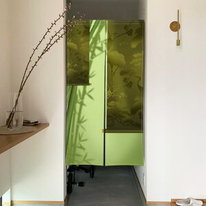 Qinunipoto のれん 和風 竹 鶴と花 シンプル風 暖簾 幅85×丈150cm インテリア 目隠し おしゃれ すだれ 遮光 部屋 間仕切り ロング カーテン 麻調ポリエステル製 オーダー可 冷/暖気遮断...