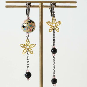 ータイプ 唐草の黒珠と紫ビーズにはさまれた黒玉 ゴールド華パーツを使用した和風イヤリング 夏祭り、花火大会など浴衣の時にお奨めです。 【サイズ】 全長:約7.8センチ、8.