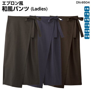エプロン不要でコーディネートが決まる!巻きスカート風和風パンツ。 薄手で軽く、シャリ感のある「トロピカル素材」使用。さらりとした着心地が特長です。 両脇ポケット付。 制電糸を織り込んでおり、チリやホコ...