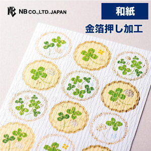 風合いのある紙に金箔が輝く、和風シールです。幸福のモチーフとされるクローバーをたっぷりと描きました。 春を感じさせる優しい色合いが、温かい気持ちにさせてくれます。 封緘シールやメッセージのデコレーションなど幅広くお使い