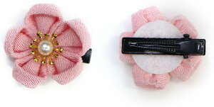 【カラー】ペールピンク●【材質】布・金属 ・樹脂●【特徴】表面に凹凸のあるちりめん生地を使用した、和風の花型ヘアクリップです。中心に