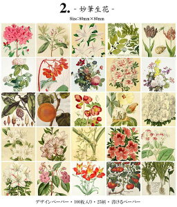 ◆平日16時迄のお支払いは当日出荷(土日祝を除く) アンティーク調のおしゃれで素敵な海外素材紙セット 一箱たっぷり100枚入り 25柄×各4枚 ペンで書ける素材なので、メモやメッセージカードにもご活用頂けます! 手帳デコ、スケジュール帳