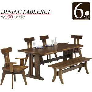 天然木ナラ無垢材をふんだんに使った和風モダン食卓テーブルセット。190cmテーブル、肘掛け付き回転チェア×2、肘掛け無し回転チェア×2、150cmベンチの6点セットです。 商品サイズ テーブル: 幅 190×奥行...