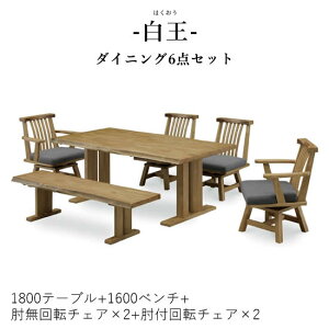 送料無料 開梱設置 テーブル、組み立て式のタモ材の和風ダイニング6点セット 材質は天然木タモ材 ウレタン塗装 SIZE: テーブル:幅180cm×奥行き90cm×高さ70cm 肘無チェアー:幅46cm...