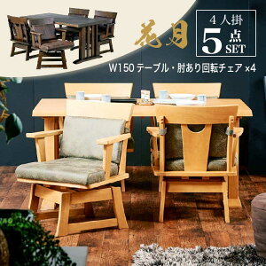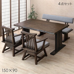 落ち着きある和風ダイニング 4点セット 150×90 天然木 ダイニング ダイニングセット 回転椅子 肘付き チェア ダイニングテーブル ダイニングチェア テーブル 4人掛け 和風 おしゃれ