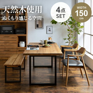 【送料無料】組立設置サービス便付き(梱包材の処分まで無料)ダイニングセット ダイニングテーブルセット 4点セット 4人掛け ベンチ オーク無垢材 150幅