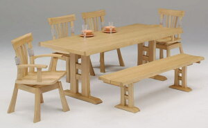 、ファブリック ■特徴 ・無垢材を使用した趣きある一枚板風仕上げのダイニングセット。 ・和モダンテイストのおしゃれなデザイン。 ・木の風合いを感じるラバーウッド無垢材を使用...
