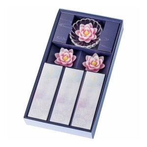 【商品詳細】「祈る心」をお伝えしたいけれど、相手に気を使わせたくないという方から選ばれる紙箱のご進物。清らな哀しみを表現した色使いと繊細な蓮のローソクが美しく、白檀を基調としたフローラルの香りのお線香(煙少香)が、贈