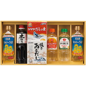●商品内容・サイズ:日の出料理酒・日の出割烹みりんタイプ(各400ml)・日清キャノーラ油(350g)・シマヤだしの素粉末(10g×6袋)・シマヤ焼きあごだし(8g×6袋)×各1 ●賞味期限(製造日から):1年●アレルゲン:小麦●箱サ...