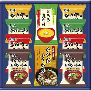 ●商品名/みそ汁バラエティ SM-COA●商品内容/とろろ昆布汁(4食入)・かつおふりかけ(3食入)・フリーズドライ(かき卵のみそ汁×2・ほうれん草のみそ汁×2・ごぼうのみそ汁×2・松茸入りお吸いもの×2)●箱サイズ/約26.5×28...