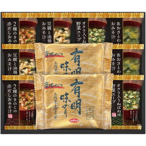 ●商品名/フリーズドライ & 有明海産 味のリ 味付け海苔 HAN-30●商品内容/有明味のリ(8切8枚)×2、2種のきのこの赤だしおみそ汁・とうふと油揚げのおみそ汁・あおさとわかめのおみそ汁・オクラ入ねばねば野菜スープ×各2●箱サイ...
