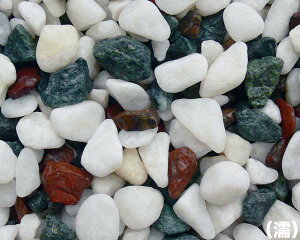 濡れると緑の鮮やかさが出ます。 サイズ 約10-20mm 重量 1袋/約20kg 10袋セット/約200kg 用途 化粧砂利 使用量目安 1m2敷き詰めるのに、 3〜4cmの厚さで...