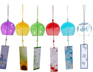 硬度が高く、透過率が高いの特徴があり、風鈴が透明でクリアになります。6個セット(レッド、ピンク、イエロー、ブルー、グリーン、パープル)。和風風鈴、手吹きガラスの風鈴