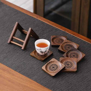 ・カテゴリ: コースター・素材: 木材・スタイル: 中華風・柄展開: 蓮花(四角、丸型)、山丘(四角、丸型)、銅銭(四角、丸型)