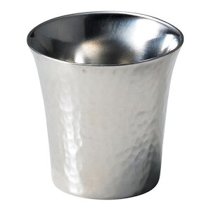 ステンレス 槌目 二層ぐいのみ 花びら型クール、スタイリッシュなステンレス槌目仕様の酒器です。高級感あふれる光沢・表面処理と上質な仕上がりで、ワンランク上のおもてなしを演出します。☆二層構造のステンレス製の酒器。結露しに