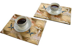 外国人に喜ばれる日本の贈り物 着物 帯風和風ティーマット2枚セット全面柄 (蝶)帯を思わせる華やかな金襴織物を使ったティーマットペアセットです。ペアセット箱入り。和紙風包装紙にて包