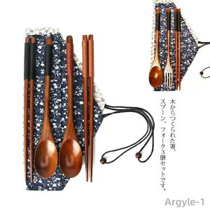 木からつくられた箸、スプーン、フォーク3膳セットです。お箸は滑り止め加工付き!おしゃれな収納袋付き、持ち運びにも便利。和食器との相性はもちろん、洋食器と合わせてもしっくり馴染みます。通勤・通学・旅行・外食に便利な3膳セ
