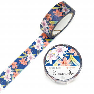 シックで粋な和柄の伝統美を優美に作り上げた和柄のマスキングテープです。 色の濃淡と金箔のグラデーションが美しく、ちぎり感や透明感のある国産和紙マスキングテープです。 ≪華-HANA-