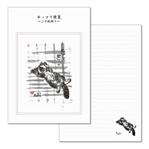 ふわふわした猫の毛並みを墨絵で表現した優しい雰囲気の絵柄です。猫と過ごすのんびりとした時間をイメージし、陽だまりの中で猫たちが平和に気持ちよさそうにくつろいでいる様子を描いています。お手紙を贈る方も受け取られる方も、
