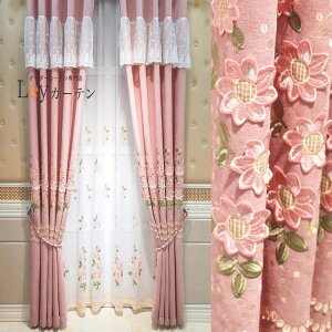 2枚セット レースカーテン 遮光カーテン 遮光 遮音 花柄 アジアン 姫系 カーテン UVカット 和風 幅 100 150 200 2倍ヒダ Leyカーテン 送料無料