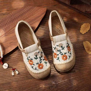 布靴 レディース 男性用 田園風 亜麻 刺繍 刺しゅう ルームシューズ 部屋履き ズック靴 スリッポン ぺたんこ靴 漁夫靴 和風 春夏・スタイル: 民族風・性別: 男・靴の素材: キャンバス・靴底の素材:...