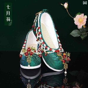 靴 レディース 和風 漢服 シューズ レトロ風 刺繍 花柄 墨緑 結婚式 新婦 ブライダル 平底・カテゴリ: 靴・スタイル: レトロ・機能: 通気性, 防滑性, 吸汗性・対象: 男性・柄: 植物, 花柄...